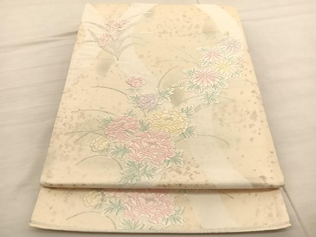 平和屋着物◎六通柄袋帯 唐織 立涌花文 銀糸 正...