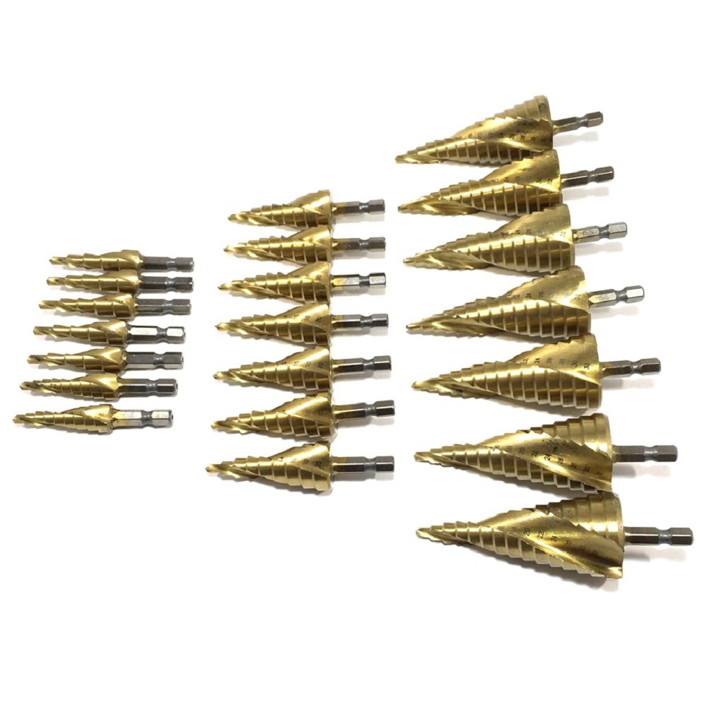 スパイラル ステップ ドリル チタン コーティング 21本 セット 六角軸 キノコ タケノコ 穴 あ...