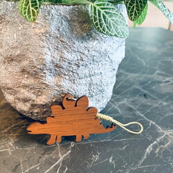 【送料無料】ウォルナット使用 ステゴザウルス ストラップキーホルダー 恐竜 ダイナソー