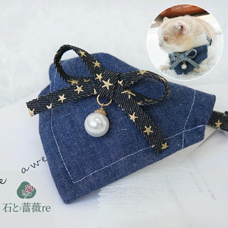 送料無料 犬猫用よだれかけ デニム かわいい 犬用スタイ 飾り 猫用 小型犬 唾液タオル ビブ ...