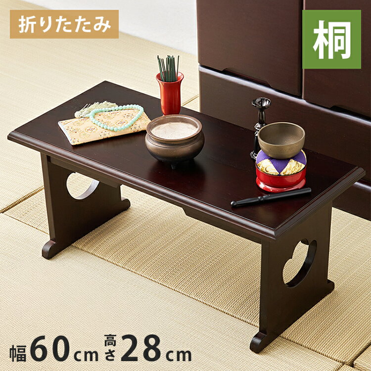 天然木 桐製 折りたたみ供物台 60×27cm 高さ28cm 中 折りたたみテーブル 便利机 供物台 経机 ...