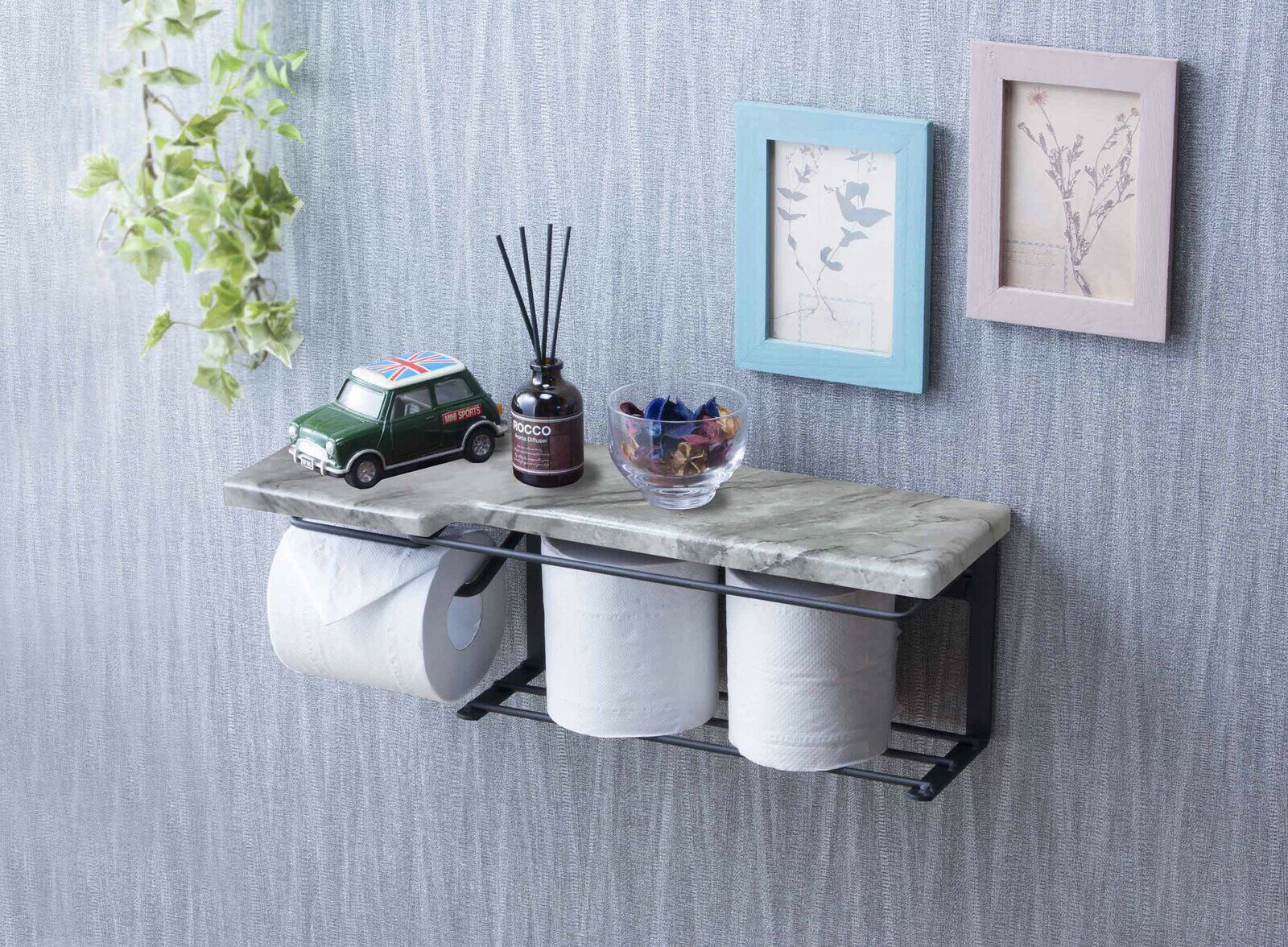 トイレットペーパーホルダー大理石柄 ストックタイプ トイレットペーパー置き 壁掛け ヴィン...