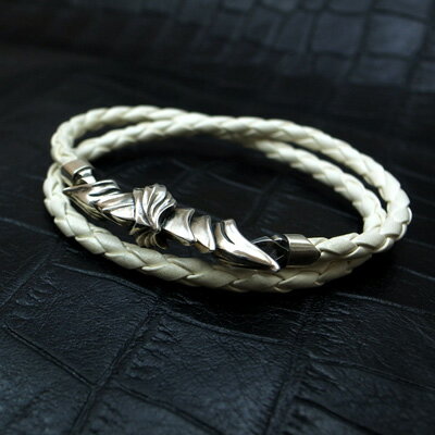 レースアップ ホワイトレザーブレスレット 編込み 編み上げ シンプル プレーン 編み込み 白色...