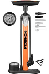 MOHEGIA自転車空気入れ:フロアポンプ-仏式米式英式バルブ対応-160PSIスケール圧力計-オレンジ