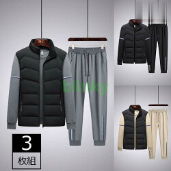 セットアップ メンズ 中綿ベスト トレーナー ジョガーパンツ 3枚組 防寒 あたたか 2023 秋