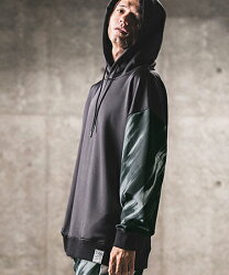 【GLIMCLAP(グリムクラップ)】One arm patterned design hooded jersey パーカー(15-073-gla-cd)