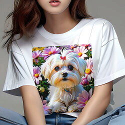 マルチーズ Tシャツ レディース 犬ファン 半袖 春夏 犬柄 プリント カジュアル かわいい 人間...