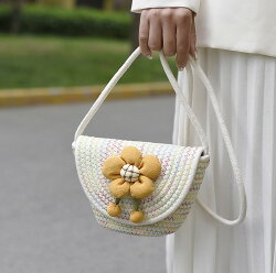 カゴバッグ 肩掛け ショルダーバッグ 3WAY クサ編み ミニ 花ストラップ 4色 出掛け[K](T)