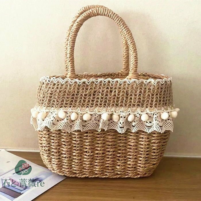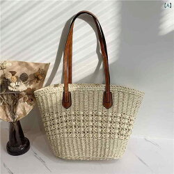 かバッグ ショルダー トート レディース わら織り カジュアル 韓国 春 ハンド ベージュ カー...