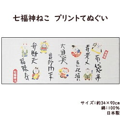 手ぬぐい 猫 招き猫 縁起 七福神 日本製 手拭い 約90×34cm 綿100% 七福神ねこ プリント手ぬ...