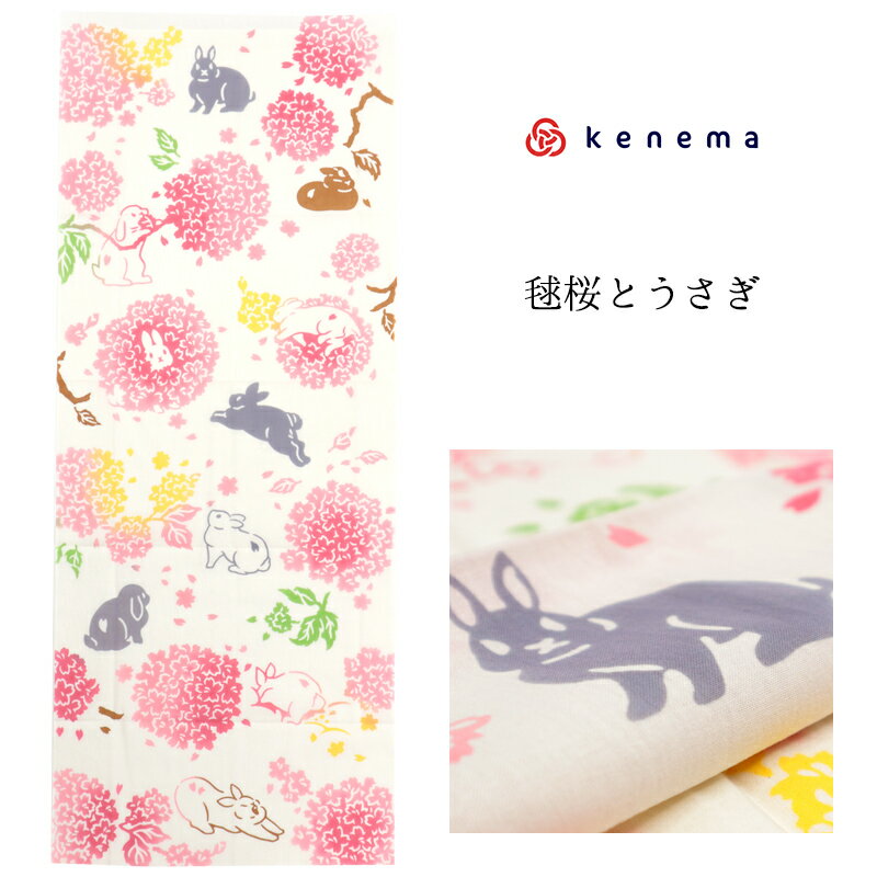 注染 手ぬぐい 【kenema】さくら「毬桜とうさぎ 50102」《kenema けねま》生成り/ベージュ/...