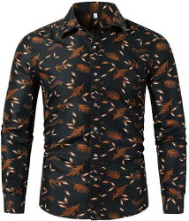 シャツ プリント メンズ 羽 プリントシャツ アウタージャケット アロハシャツ 短め 長袖 折り...