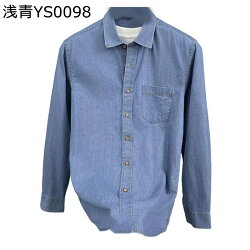 綿100 デニムシャツ メンズ 開襟シャツ 長袖 ジャケットシャツ gジャン ブルー ブラック イエ...
