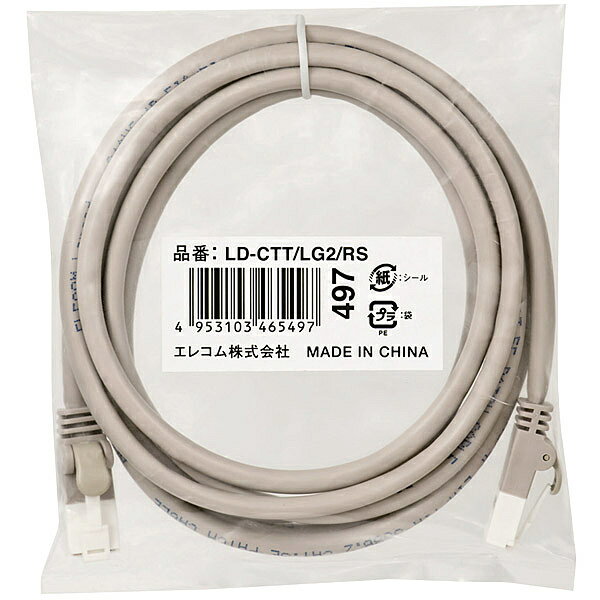 ELECOM LD-CTT/LG2/RS RoHS指令準拠LANケーブル/ CAT5E/ 爪折れ防止/ 2m/ ライトグレー/ 簡易...