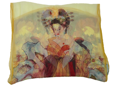 透け感のあるシフォンスカーフ Japanese Kimono ガール クリームxオレンジ