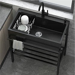 ブラック 混合水栓付き 黒 流し台 ガーデンシンク 庭 業務用シンク 引き出し式蛇口付き キッ...