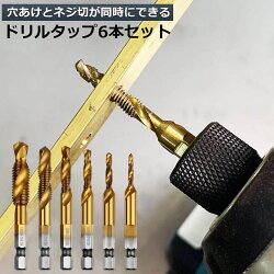 ドリルビット タップドリルビット 六角軸 ネジ切り 6本セット 面取りタップ 穴あけ タップセ...