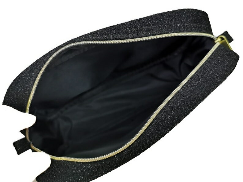 CHANEL NOVELTY シャネル ロゴ入化粧ポーチ Dカン CCロゴ入りファスナーショルダーストラップ 約120cm~(社外品・取外し可能) 斜め掛け可能ノベルティー ポリエステル製ブラック(ラメ入)×ゴールド