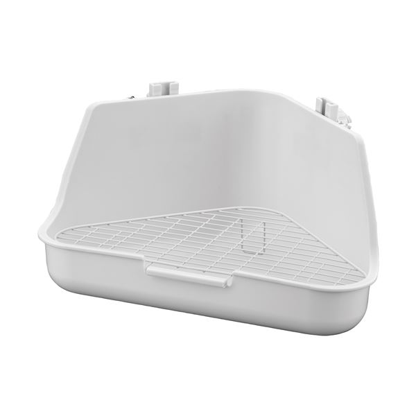 ■商品内容【ご注意事項】この商品は下記内容×2セットでお届けします。・奥行きひろびろ!だけどコーナー設置で省スペース!スノコサイズ約1.2倍(※三角ラビレット比) ・スライド式で取付簡単!ケージにしっかり固定! ・ホーランドロップ、ミニうさぎなどの中型種に ・三角シーツがピッタリ!はみ出さないのでいたずらされにくい ・特殊構造のロック式スノコでいたずら防止 ・大きなオシッコガード■商品スペック■材質/素材トイレ本体:ポリプロピレン スノコ:スチール■原産国または製造地中国■商品使用時サイズ幅350×奥行225×高さ180mm■使用方法1.トイレをケージ背面側の左右どちらのコーナーに設置するか決め、トイレ本体を仮置きします。 2.ホルダーの上下を確認し、一方の差し込み部に差し込みます。 3.十字ボルトをケージのワイヤーに差し込み、ナットで仮留めします。 4.同様にもう一方のホルダーも仮留めします。 ※トイレ本体の底とケージの底が水平に接地しているか確認してください。水平でない場合は、ホルダー固定位置を変更してください。 5.位置が決まったら、ナットをしっかりと締めて固定します。 ・ホルダーが取り付けられないケージの場合は、ワンタッチフックで固定してください。フックをケージのワイヤーに引っ掛けて固定します。■お手入れ方法・本製品が汚れたら、やわらかい布やスポンジを用いて、水またはぬるま湯でよく洗ってください。 ・洗う時は、金属製のタワシやベンジン、その他薬品類を使用しないでください。キズがついたり、スノコ劣化、ツヤ落ちすることがあります。 ・汚れはこまめに取り除き、いつも清潔にしてください。 ・ペットや用品(器具)に触れた後は、石鹸でよく手を洗ってください。 ・スノコが劣化したら、別売りの「ラクラク取付三角ラビレットL用スノコ」をお買い求めください。■諸注意【ご使用上の注意】 ・本製品はうさぎ等の小動物専用です。他の目的には使用しないでください。 ・子どもにセットさせる場合は、大人の監視のもとで行ってください。 ・空袋は直ちに子ども・ペットの手の届かない所に処分してください。口や鼻をふさぎ、窒息する恐れがあります。 ・本製品が欠けたり、ヒビが入った場合は使用しないでください。 ・スノコの網目にうさぎ等が足をはさむ場合がありますので注意してください。 ・スノコの塗装が剥がれるとスノコが劣化し、耐久性が落ちて事故の原因となりますので、ご使用を中止してください。【キャンセル・返品について】商品注文後のキャンセル、返品は承りかねます。予めご了承下さい。■送料・配送についての注意事項●本商品の出荷目安は【1 - 5営業日 ※土日・祝除く】となります。●お取り寄せ商品のため、稀にご注文入れ違い等により欠品・遅延となる場合がございます。●北海道への配送につきましては別途追加送料が発生します。 また沖縄県・離島へは配送不可となります。[ 66107 ]