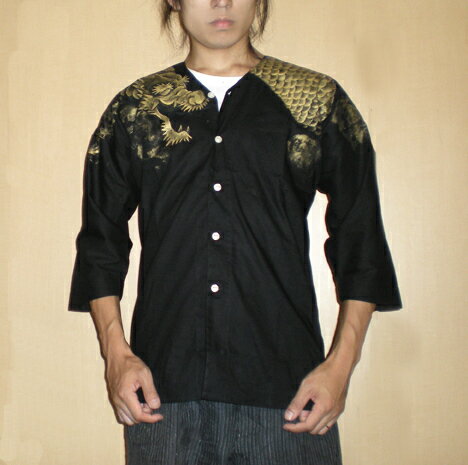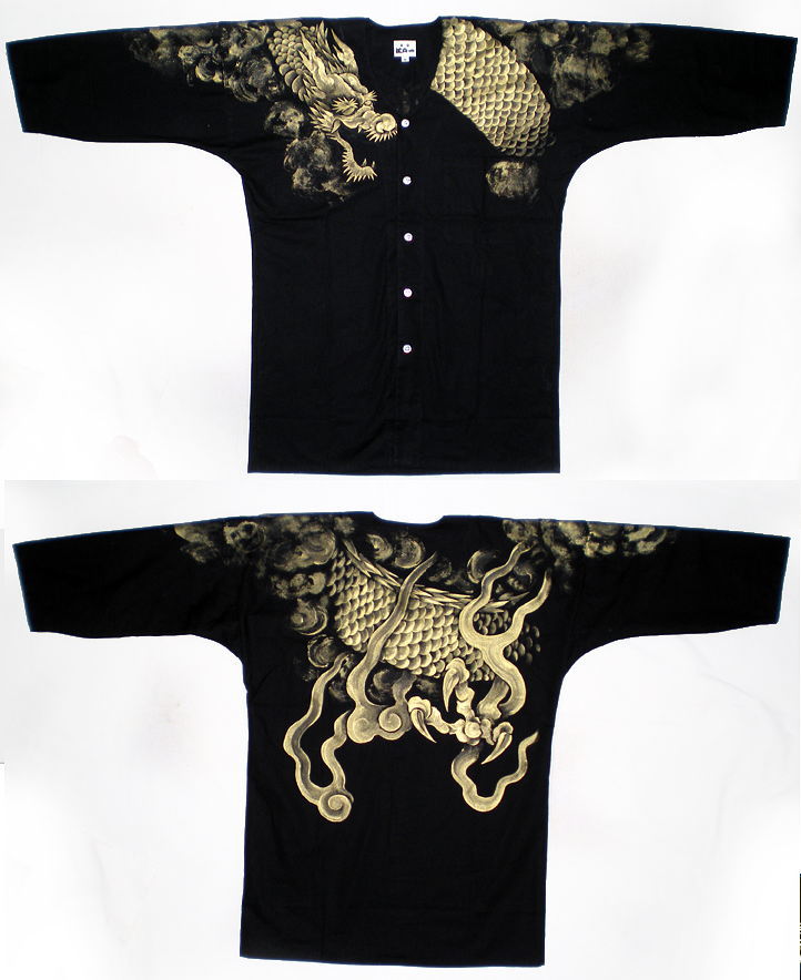 【羽水】ダボ・鯉口シャツ「雲龍-黒」 和柄メンズ&レディース 手描き ダボシャツ
