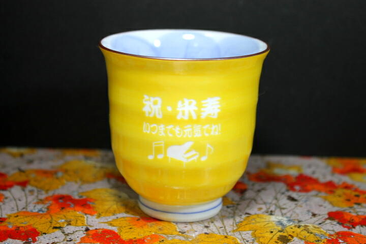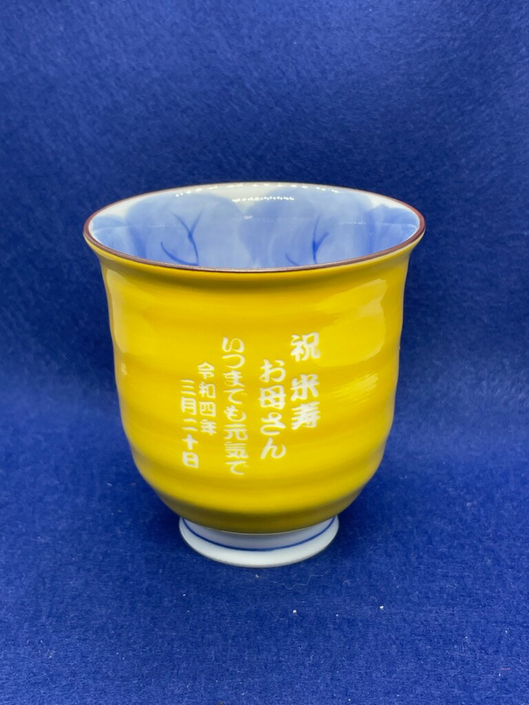 米寿祝 名入り湯呑み有田焼木の葉ふくろう黄色 メッセージ入り湯呑み古希祝い喜寿祝い傘寿祝い縁起物の贈り物