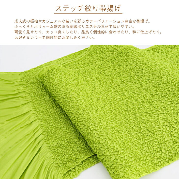 振袖用絞り帯揚げ 選べる全12色 ポリエステル100% ステッチ絞り帯揚げ おびあげ 振袖 成人式向け 小紋 カジュアル着物 訪問着