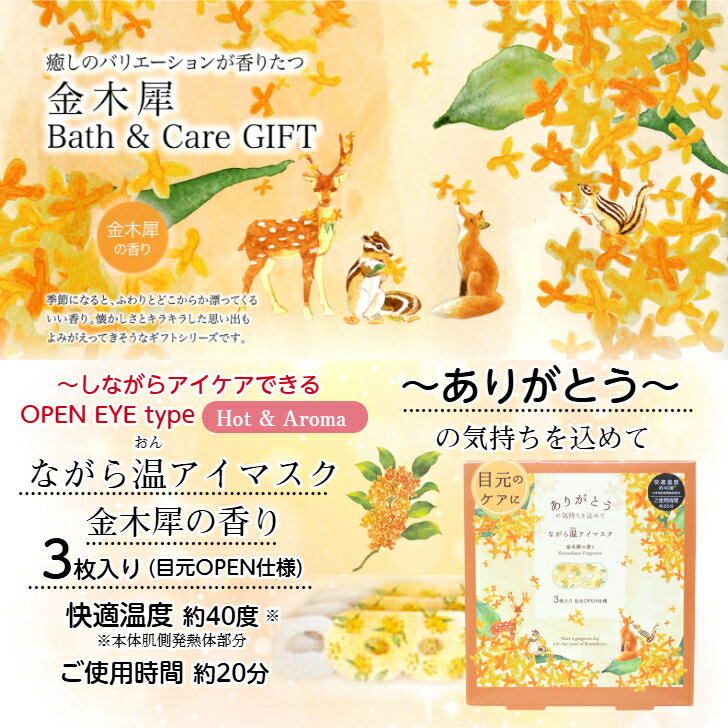 【ながら温アイマスク 金木犀 3P】3枚入り 個装袋入り キンモクセイの香り きんもくせい ほんやら堂 目元OPEN仕様 アイケア アロマ 使い捨てアイマスク ながらほっとアイマスク