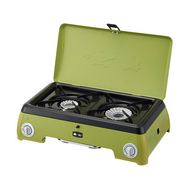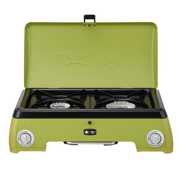 商品説明★ LOGOS × Sengoku Aladdin のコラボレーション!kama-doのロゴスオリジナル限定カラー「 Sengoku Aladdin 」で人気の、持ち運びに便利なコンパクトサイズのコンロ「kama-do」とコラボ。ロゴス限定カラーは自然なグリーンの色合いが特徴的で、他アイテムとの相性も抜群。トップカバーはランプマークと、LOGOSのロゴマークのメイプルリーフが入ったコラボ限定デザインです。コンパクトなので持ち運びしやすく、室内でのご使用はもちろんのことアウトドアシーンでも活躍します。・カセットボンベ式・ツーバーナー・耐風設計・耐荷重20kg★ 「かまど」をイメージしたデザイン日本の伝統的な暮らしの道具「かまど」をイメージしたカセットコンロ。思わずキャンプに持って行きたくなるようなシルエットとキャンプサイトに馴染むカラーリングで、食卓を明るく彩ります。★ 持ち運びやすいカセットボンベ式カセットボンベをセットするだけで簡単に使用できます。底面がフラットなので、テーブルでも使用いただけます。室内での使用はもちろん、ベランダやキャンプ場などの屋外でも活躍します。電源が使用できない災害時でも安心です。※カセットボンベは「SENGOKU ALADDIN カセットボンベ(3pcs)」(別売品)をご使用ください。★ 使い分けができる、大・小異なる炎径バーナー右が2.9kW、バーナー左が2.1kWと左右で炎径が異なるため、炎径の大きい右側はフライパンやダッチオーブンなどでメイン料理を、炎径が小さい左側はケトルで湯沸かしなど、調理器具に合わせて使い分けることができます。また、耐風性に優れたトルネードバーナーの搭載により、炎が中央に集まり効率よく温めます。★ 耐荷重は20kgダッチオーブンなど重量のある調理器具も使用いただけます。★ 料理に合わせて火力調節が可能バーナー右でグリル料理、バーナー左でスープの保温など高火力からとろ火まで料理に合わせた火力調整が可能です。★ 風に強い耐風設計バーナーを本体に潜り込ますように配置した構造と、取り外し可能な風よけのトップカバー採用で、風が吹いても火が消えにくく、アウトドアにも最適です。トップカバーはランプマークと、LOGOSのロゴマークのメイプルリーフが入ったコラボ限定デザインです。★ 取っ手付きで持ち運び簡単ツーバーナータイプには取っ手が付いているので持ち運びも簡単です。★ 安心のベルト付きベルトで固定できるので、移動時にトップカバーが外れる心配がありません。★ 汁受け部分は取り外し可能でお手入れ簡単汚れやすい汁受け部分は簡単に取り外しができます。受け皿はホーロー加工で掃除もしやすく清潔に保つことができます。スペック* 総重量:(約)5.6kg* サイズ:(約)幅53×奥行41.2×高さ35cm* 収納サイズ:(約)幅53×奥行31.4×高さ16.6cm* 出力:右(約)2.9kW、左(約)2.1kW* 燃焼時間:(約)右/1時間11分、左/1時間38分* 構成:本体、蓋、ゴトク* 主素材:スチール、ABS※燃焼時間は、気温20〜25℃において最大火力で使用したときの目安です。火力を抑えればさらに長く使用できます。
