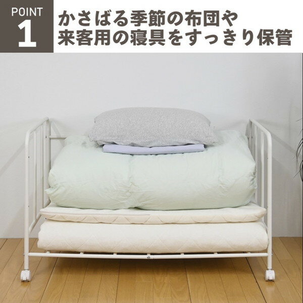 布団収納ラック ふとん収納 1段 キャスター付き 109×69×65cm 押入れ クローゼット 布団 ふとん 収納 ラック 高さ調節 すのこ 押入れ収納 キャスター 梅雨 湿気 保管 棚 毛布 マットレス D69 SH-CS6965 WH