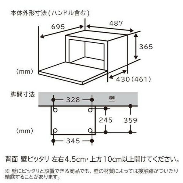 商品説明★ 大容量31Lワイド&フラット庫内庫内幅41.5cm(※)のワイド庫内で大きなお皿やピザなどが出し入れしやすい。※ 庫内幅開口寸法★ 過熱水蒸気を使った「ノンフライ」「過熱水蒸気調理」過熱水蒸気とオーブンを使い、油を使わずにカラッとフライ調理ができる「ノンフライ」や、過熱水蒸気を庫内に充満させながら調理し、しっかり焼き上げ、ふっくらと仕上げる「過熱水蒸気で焼き物調理」ができます。オーブンと過熱水蒸気で、揚げ物の衣をサクッと中までしっかりあたためる「揚げ物あたため」も搭載。★ 忙しい時に役立つ、メインから副菜までおまかせメニュー「おまかせで簡単オート調理」ボウルひとつで簡単調理「ボウルメニュー」(※)には「野菜シャキシャキメニュー」や「カレー・シチューメニュー」「パスタメニュー」が搭載。その他「冷凍からラクラクメニュー」や「冷凍食品パリッと調理」、「スピードメニュー」なども搭載。※ 耐熱ガラスボウルのみ対応です。★ 重さをはかるから、あたためも解凍も分量おまかせ食品の重さ(容器を含む)にあわせて加熱量を算出する「重量センサー」を搭載し、食品の重さにあわせてあたため、解凍します。★ スイーツも焼き物も手軽に作れる「250℃(※) オーブン1段」※250℃の運転時間は約5分間です。その後は自動的に210℃に切りかわります。★ 調理後の庫内お手入れがらくに。「らくメンテ」スペック* 本体重量:15.5Kg* 容量:31L* 幅(外形)mm:487* 高さ(外形)mm:365* 奥行(外形・ハンドル除く)mm:430* 設置寸法(幅×高さ×奥行)mm:577×465×430* 庫内寸法(幅×高さ×奥行)mm:401×218×344* ピッタリ設置:背面* 庫内形状:フラット* 2段調理:無* 加熱方式:250℃ヒーター式* ドアタイプ:タテ開き* レンジ出力:1000W、600W、500W、200W相当、100W相当* トースト機能:有* センサー:重量センサー* オーブン温度:100〜210℃、250℃* オーブン段数:1段* 解凍:全解凍+半解凍* スチーム機能:過熱水蒸気* スチーム給水方式:タンク式* 発酵機能:発酵(30・35・40・45℃)* レシピ数:138* 自動メニュー数:113* 自動お手入れ:有* 2品同時あたため(オーブンレンジ):有* スマホ操作機能:無* 消費電力:1240W* 音声操作:無* 年間消費電力量:79.3kWh/年* 付属品:外して丸洗いテーブルプレート(411x314mm)