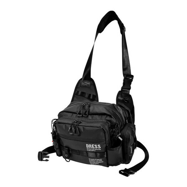 商品説明★ 高い収納性と運動追従性を備えたワンショルダーバッグ!!★ 全面防水生地採用、更に軽量化も成功し大幅にパワーアップ!!★ 高い防水性能DRESS ホールディングシールドバッグは、全面に防水生地を採用し、さらに止水ファスナーを使用しています。これにより、釣行時の水しぶきや突然の雨から収納物をしっかりと守り、あらゆる天候条件下での使用に対応します。★ 優れた収納力大型のメインコンパートメントには、中型ボックスを3〜4個収納することができます。バッグ全体に配置されたフィッシングツール専用のホルダーやインナーポケットにより、アイテムの整理整頓がしやすくなっています。★ 軽量化と運動追従性バッグ自体の生地をリニューアルし、軽量化に成功。これにより、長時間の釣行やアウトドア活動でも疲れにくくなっています。ショルダーとウエストの2ポイントでバッグを保持する設計により、バタつきを抑え、快適な携行性を実現しています。★ フィッシングツールのための機能ロッドホルダー: 左右にロッドホルダーを配備し、収納時にはショックコードで固定できます。ツールホルダー: 右サイドにはプライヤーやフィッシュグリップ用のホルダー×2が配置され、小物ポケットにはスマホなどが収納可能です。ボトルホルダー: 左サイドにはメッシュ素材のボトルホルダーがあり、ペットボトルや水筒を収納できます。※注意事項・本来の目的以外にはご使用しないでください。・間違った使用による破損及び、事故、怪我等にはメーカーは責任を負いませんので安全にお取り扱い下さい。・品質には万全を期しておりますが、ご使用前に破損がないか確かめてください。万一、不具合があった場合は使用しないでください。・本製品は完全防水ではありません。製品を水の中に入れたり、雨の中長時間放置すると浸水します。・本品は素材の性質上、素材端部より中の繊維が出てくることがあります。出てきた繊維は引っ張らずハサミ等で切断してください。・素材の特性上、開封時ににおいがすることがありますが品質上問題ありません、においが気になる場合は、袋から出してしばらく陰干しをしてください。・通常の使用でも若干の変退色は避けられませんのでご了承ください。・鋭利なものを入れたり、強い衝撃や過度な重量を加えると破損の原因となりますのでご注意ください。・収納物を衝撃から完全に保護することは不可能ですので、お取り扱いには十分ご注意ください。・本製品を使用しての内容物の破損等におきましては、いかなる場合においても保障はいたしかねますのでご了承ください。・摩擦により、色落ちや他のものへの色移行が生じる場合がありますので充分ご注意ください。・素材特性上、直射日光の長時間照射により色褪せすることがあります。・洗濯及びアイロン掛けは避けてください。・汚れた際は中性洗剤を使い優しく手洗いして、陰干しをしてください。・保管の際は、高温多湿な状態や光の当たる場所は避けてください。・火気の側でのご使用はお控えください。・製品はロットごとに予告なく若干の仕様が変更される場合がございます。スペック* サイズ…・本体: 約W270×H240×D100mm・ウエストベルト(取り外し可能): ベルト幅約40mm 最大全長約1200mm ※バックル除く* 重量: 約590g* 素材: PVC 70%/ポリエステル 30%
