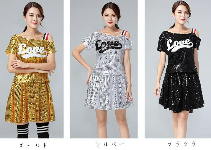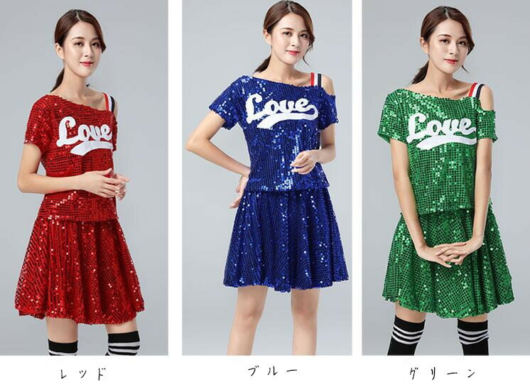 スパンコール ダンス衣装 セットアップ ヒップホップ DS ジャッズダンス 衣装 チアガール レディース舞台演出服 ステージ衣装 学園祭 文化祭 イベント 舞台お揃い団服 6色 S-4XL