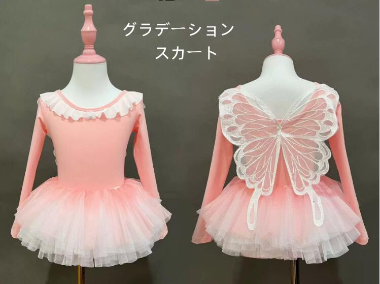 子供 バレエダンス衣装 長袖 レース レオタード バタフライ 蝶モチーフ チュチュ スカート 女の子 バレエ 演出服 子供 バレエ衣装 バレエ 新体操 演出服 練習着 ピンク パープル ブルー イエロー