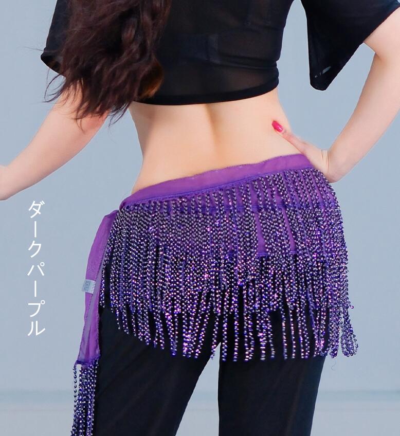 ベリーダンス ヒップスカーフ ビーズ付き キラキラ ラップスカーフ フリンジ付き 巻きスカーフ ベリーダンス 小物 ベリーダンススカーフ フリーサイズ 7色