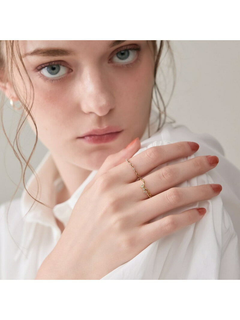 【予約商品について】 ※「先行予約販売中」「予約販売中」をご注文の際は予約商品についてをご確認ください。■重要なお知らせ※ 当店では、ギフト配送サービス及びラッピングサービスを行っておりません。ラッピング・ギフト配送について同時に複数の商品を注文された場合メーカー希望小売価格について置き配についてご利用ガイドNOJESS(ノジェス)《Pre Holiday Limited Edition》ゴールドマルチストーンリング「Trick Ring」2本のリングを組み合わせると、まるで3本レイヤードしているかのように見える仕掛けリング。未来の欠片を叶えるために、自分の心にそっと誓った約束。願いをそっと閉じ込めるように、繋がるラインに想いをこめました。「永遠の幸福を運ぶ」という思いが込められた植物のリースをモチーフに、グリーンークリアの清らかな色合いの天然石で飾りました。石座一つひとつのディテールやリングアームのリズミカルな動きが楽しいデザイン。リングアームが途中で枝分かれするようなユニークなデザインは、1本で着けても手元に動きをプラス。【デザイナーのこだわりポイント】《Pre Holiday Limited Edition》ゴールドマルチストーンリングとの重ね着けを想定してデザイン。2本重ねると6石が横並びになり、まるで多石リングのような華やかさを演出。あえてストレートに並べずランダムに見える配置にすることで、抜け感のある軽やかな印象に仕上げました。天然石の色合いは、6石合わせたときに統一感が出るよう厳選。1本で着けたい方にも選びやすいよう、すっきりとしたデザインで指馴染みの良いリングです。 ※天然石や天然素材を使用しているものは、サイズ・色味・風合いの違いや、若干の傷、内包物の有無などに個体差があります。予めご了承ください。※サイズ直し不可。※特別BOX付き。通常のギフトラッピングサービスはご利用いただけませんので、あらかじめご了承くださいませ。型番:30254127061-98-009 QK3524【採寸】サイズ幅13.0号細0.12、太0.5411.0号細0.12、太0.549.0号細0.12、太0.54商品のサイズについて【商品詳細】素材:silver,gold plated,Yellow,prehnite,topaz,labradoriteサイズ:9.0号、11.0号、13.0号※画面上と実物では多少色具合が異なって見える場合もございます。ご了承ください。商品のカラーについてこの商品はセール商品のため返品・交換対象外です詳細はこちら >>