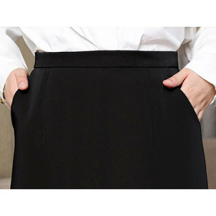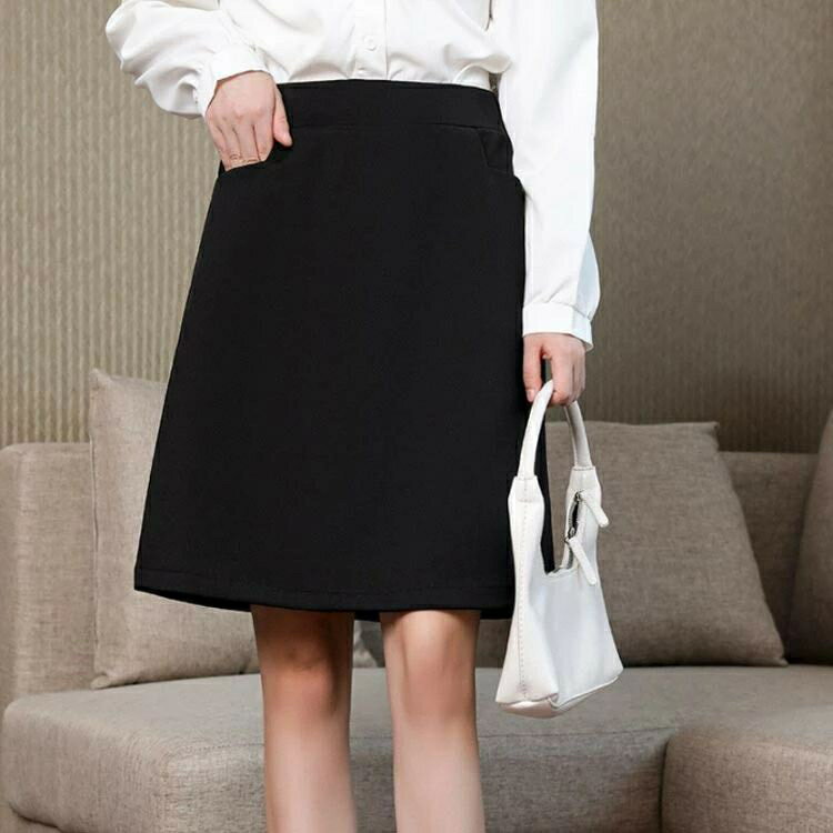 ビジネス ポケットあり 事務服 膝上丈 制服 ウェストゴム スカート Aライン ボトムス 洗える タイト ユニフォーム 事務員 事務服 通勤 美脚 オフィス オフィス ポケット 体型カバー Aライン ブラック OL プレゼント 大きいサイズ 大人 女性 ギフト