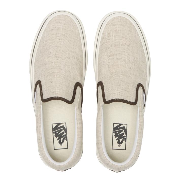 【VANS】 ヴァンズ SLIP ON LITE スリッポンライト V98 LITE HEMP NATURAL/WHISPER【ご注意】こちらの商品は弊社実店舗からも集約(入荷)するため、「靴箱の破損、色あせ、プライス貼付、剥がし跡」「靴箱内の包装用紙破れ、商品タグなどが無い状態」「履きジワやボンドの付着、若干のシミ、汚れ」が生じる場合がございます。また、正規の靴箱が著しく破損している状態時には代替の靴箱を使用する場合もございます。尚、弊社実店舗から集約しました商品は検品を行って販売可能な商品をご案内致しております。その為、商品の状態の指定はできませんので予めご了承下さい。※こちらの商品につきましては下記ご利用ガイドをご確認下さい。■ご利用ガイド 軽量・クッション性に優れたVANS LITEシリーズのSLIP ON LITE(スリッポンライト)。「ヴァンズ・ライト」シリーズは通常、ラバー素材であるソールを軽量素材で構成し、「EVAカップインソール」を搭載することで弾力のある履き心地を実現。見た目はそのままにストレスフリーに履ける1足。 サイズ目安はこちら【サイズ目安】(個人差がございますので、あくまでも目安とお考え下さい。)このシューズの作りは標準です。素材=合成繊維シューズの製法上、接着剤の付着や縫製のズレ・歪みがある場合がございますが、不良品ではございませんので予めご了承ください。【お手入れに関して】水洗いにより接着剤が溶解し、染み汚れの原因となる可能性がございます。水洗いは避けて頂きますようお願いいたします。【ご購入前に必ずこちらをご確認ください。 】 [ABCMART][ABCmart][abcmart][ABCマート][abcマート][エービーシーマート][エービーシー][エービーシー マート]