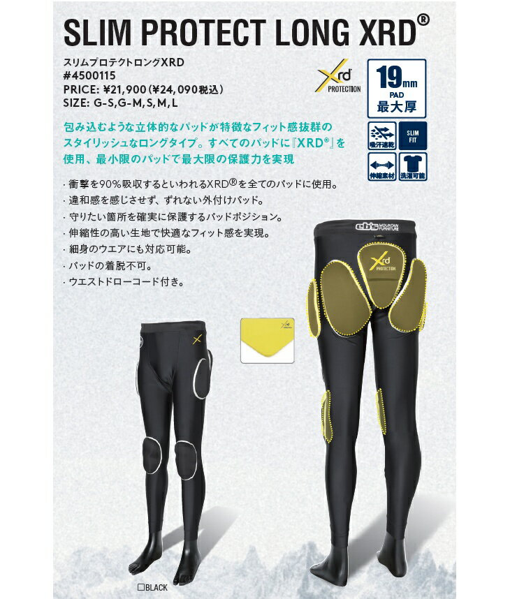 -----------------------------------------------------------------------------------------------------------------【EB'S!】軽量で柔軟性が高く、衝撃の90%を吸収する素材『PORON® XRD® 』を搭載 マイクロセルポリマーシート「PORON®」は、イノアックコーポレーションと米国ロジャースコーポレーションの合弁によって誕生したロジャースイノアックが生産する、高密度で、極めて微細、且つ均一なセル構造を有した高機能ウレタンフォームです。 ---------------------------------------------細身のウェアのライダー必須アイテム ・足首までのロングタイプ。 ・分割された膝パッドは吸い付くようにフィット。 ・衝撃を90%吸収するといわれるPORON® XRD®を全てのパッドに使用。 ・違和感を全く感じさせず、ずれない外付けパッド。 ・守りたい箇所を確実に保護するパッドポジション。 ・伸縮性の高い生地で快適なフィット感を実現。 ・細身のウェアーにも対応可能。 ・パッドの着脱不可。 ・ウエストドローコード付き。 --------------------------------------------- 【ご注文の前に必ず画像の注意点をお読みください】出品中の商品は店頭在庫、メーカー在庫を一部共有しております。 ご注文後、弊社からのご注文確認メールを送信させていただいてご注文確定とさせていただきます。 また、メーカー在庫の場合、数日間お待ちいただく場合がございます。何卒よろしくお願いいたします。誠にありがとうございます。ご購入前に下記注意事項を必ずお読みください。 ----------------------------------------------------------------------------------------------------------------- ■すべて出品している商品は正規日本代理店、または正規メーカー商品です。安心してお買い求めください。 ■PC環境、撮影状況などで多少カラーが異なる場合がございます。ご了承の上お買い求めください。 ■実店舗でも、他ウェブサイトでも販売をさせていただいております。 ■一日に定期的に在庫チェックを行い商品の空売りの防止を行っておりますが万が一の空売りの際は 販売をお断りさせていただく場合がございます ■期間限定のサービス企画やプレゼントは一定期間とともに終了、または同等のプレゼントなどに予告なく変更になる場合がございます。 何卒ご了承お願致します。