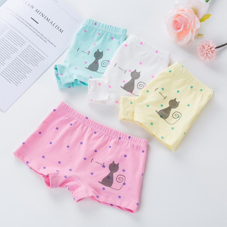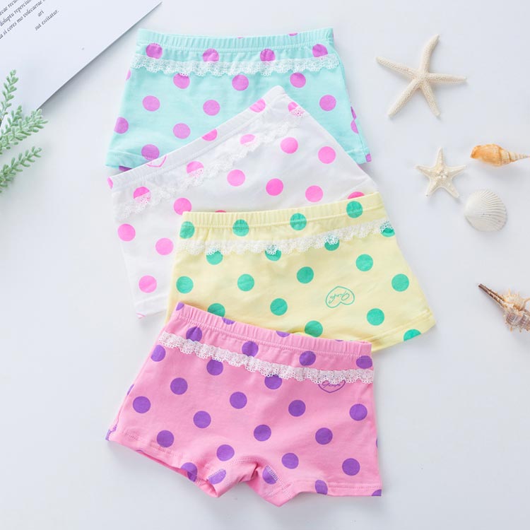ボクサーパンツ おしゃれ 4枚セット 保育園 子供用 ジュニア 4枚セット レース 女の子 キッズパンツ ドット柄 ショーツ パンツ かわいい ガールズ 柔らかい 肌に優しい 子供下着 柄入り 下着 ボクサー 可愛いパンツ 綿 女児
