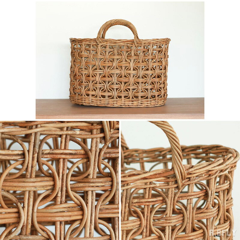 バスケット レトロ ループ編み アラログ 皮付きラタン 天然素材 籐 手編み ハンドメイド ドライフラワー ストック キッチン 玄関 雑誌 マガジンラック ナチュラル アンティーク風 洗面所 ランドリー 小物収納 ディスプレイ インテリア ヴィンテージテイスト