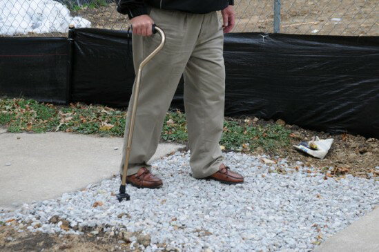 【本商品はアウトレット特価品です】 ・在庫品限りの特別限定価格です。 ・未使用品ですが、パッケージに汚れや破損などがある場合がございます。 ・商品の機能には問題はございません。 ・商品の不良以外でのご返品は承りません。 さらにお安く!!お得な 2個セットもございます すべり止め加工された杖の交換用先ゴム。 3支点で地面をとらえるので、砂利道でも安定します。 また杖を差し込むネックが360度の方向に曲がるので、イスやトイレからの立ち上がりが安定します。 19mm・22mmの杖用 日本アビリティーズ協会会長のおすすめ 私が今まで使ったチップで軽くて確実に滑らないチップとして最高のものと思いました。 先ゴムの底面が丸い3支点になっています。 この3支点がカッチリと地面につくこと、また、その材料が滑りにくい素材で出来ていることから、たいへん安定した歩行を実現します。 凸凹道や砂利道でも滑らず、極めて安定した歩行が可能です。 低い椅子やトイレからの立ち上がりにもすべりを防ぎながら楽に立ち上がれます。 ベース部分と杖先のハマるところが常に首を振る感じで動くにもかかわらず、損傷することなく1年以上も支障なく使用している優れものです。 □■注意点 ・使用例の写真は、適度な過重をかけた際の曲がり例です。安全上、通常は容易には曲がらないようになっています。 ・この商品は、交換用の杖先ゴムのみです。写真の杖などは含まれません。 ・3つのフットのうち、ひとつを進行方向、残り2つは後方に置くように取り付けてください。 ・杖を斜めにつく場合、先ゴムの地面への接触面積が小さくなる場合があります。濡れた路面での使用や使用角度により滑りやすくなりますので、ご注意ください。 □■仕様 対応径:19mm/22mm用 対応径は、使用する杖のパイプの外径です。 お使いの杖にあわせてお選びください。 個数 :1個入り/2個入り 材質 :ポリエチレン・ポリカーボネート サイズ:幅7.5×高さ9cm 重量 :約80g/個 色 :黒 製造者:GO STEADY, LLC(アメリカ製) 利用者にとって最適な福祉製品のあり方を示した川崎市独自の基準。 検索用ワード: アタッチメント 雨に強い杖先ゴムあたっちめんと 19mm杖先ゴム 22mm杖先ゴム 滑らない先ゴム 3点先ゴム
