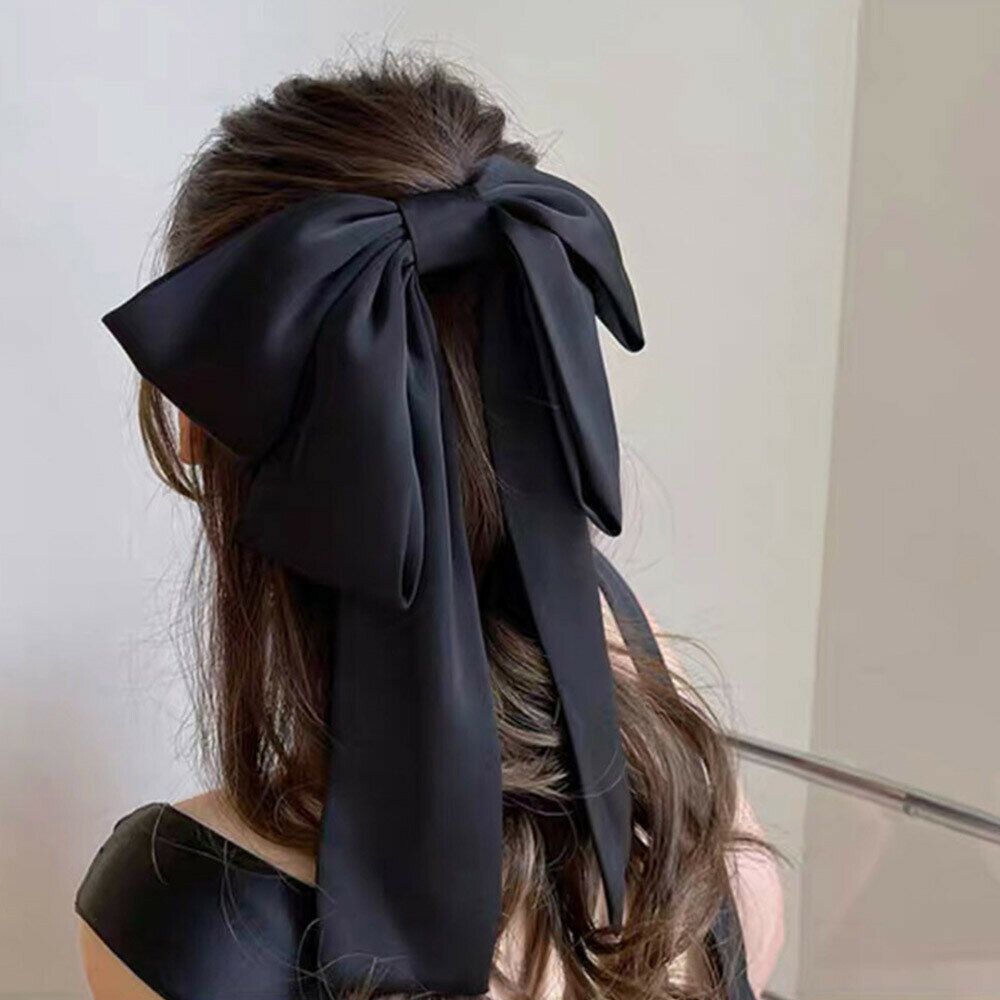 本日はポイント5倍デー! ビッグ リボン バレッタ リボン 黒 ブラック リボン 大きい 結婚式 ヘアアクセサリー 特大 発表会 パーティー イベント 大き目 おおきめ 上品 ヘアアクセ 髪飾り 簡単ヘアアレンジ ハーフアップ かわいい 可愛い ビッグリボン