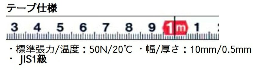 【特長】 ・耐久性を考慮し、最少部品数で構成された特殊ギア装置で従来品の3倍(当社比)の巻き取り速度を実現 ・グリップ部は腕が通せるスペース構造。手がフリーに使えます ・テープは、折れ・サビに強いナイロンコート ・水洗いもOK ・特殊ギアを使って巻取速度も3倍速(当社比) ・先端部はショックアブソーバ付で破損を防止 ・当社独自のブレーキ機構で、引出時のトラブルを防止 【仕様】 ・標準張力/温度:50N/20℃ ・幅/厚さ:10mm/0.5mm ・ JIS1級