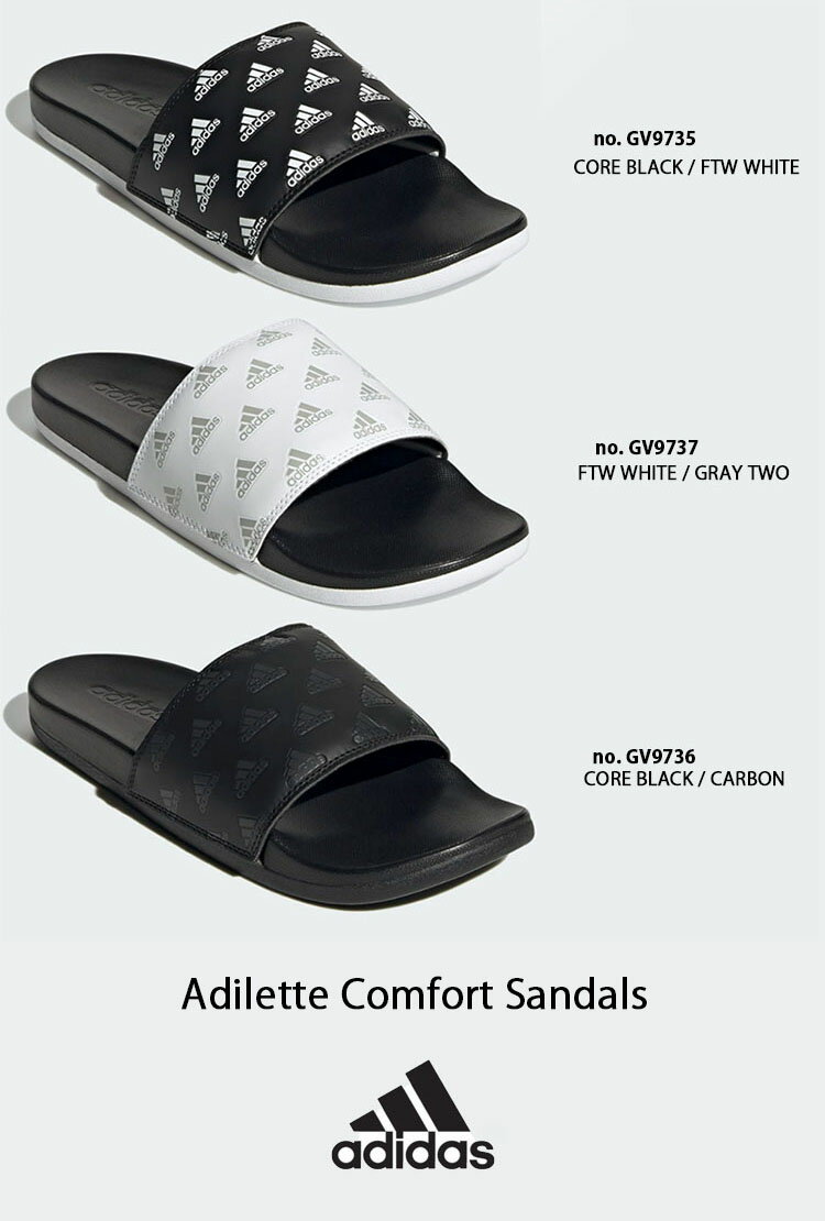 adidas アディダス サンダル スリッパ ADILETTE COMFORT GV973 アディレッタ コンフォート BLACK WHITE CARBON ロゴ スライドサンダル シャワーサンダル ブラック ホワイト GV9735 GV9736 GV9737【中古】未使用品