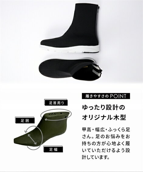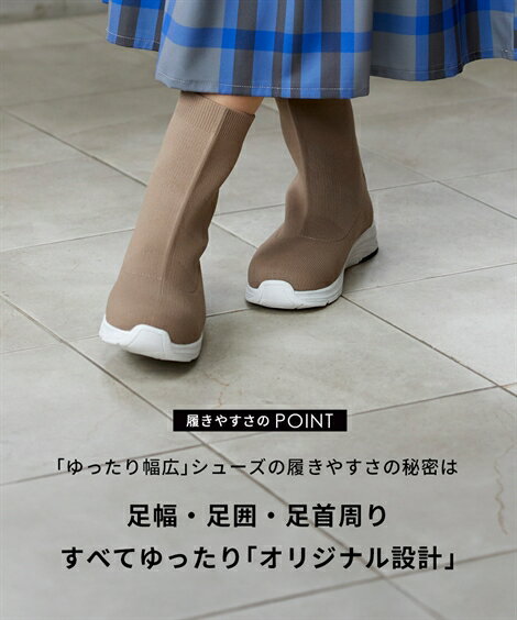 ▼当店の幅広シューズについて 詳しくはこちら靴 4E 幅広 ゆったり ワイド 大きいサイズ 超軽量 ニットブーツ フィット カジュアル 脱ぎ履きらくらく (アクアカルダ) 黒 アイボリー グレージュ カラー黒/アイボリー/グレージュ サイズM・23.0~23.5cm/4E/L・24.0~24.5cm/4E/LL・25.0~25.5cm/4E/3L・26.0~26.5cm/4E 素材 材質=合成繊維 底材=合成底 底の厚さ(後ろ)=約3cm ワイズ=4E 重量=約225g(4E:Lサイズ片足) 後ろファスナー開き ※中敷きは取り外して自然乾燥できます。 原産国 中国 メーカー品番 ZZY4L24D0030 コメント 片足約225gで足が楽な超軽量ニットブーツ。足の動きにフィットする屈曲性の良いソールだから歩きやすく、ふわふわの中敷きなので足あたりもソフトで快適です。使いやすいベーシックカラーにソールの白が効いています。シンプルなデザインなので、コーデを選ばずどんなスタイルにも合わせやすいです。ニット素材だから柔らかな足当たり、スニーカーのようなアウトソールで疲れにくく、屈曲性のあるソールで歩きやすい。きれい見えする程良い厚底感。着脱が楽な後ろファスナー付です。 ■オリジナルの大きいサイズ規格 本当に合う靴に出会った事はありますか?当店の4Eは、靴底の幅を広げ、甲や足首周りもゆったりの独自設計。靴のサイズにお悩みのお客様へ向けて、サイズが大きくてもバランス良くきれいに見えるよう企画したオリジナルシューズです。