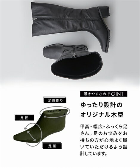 ▼当店の幅広シューズについて 詳しくはこちら靴 4E 幅広 ゆったり ワイド 大きいサイズ スクエアトゥ タンクソール風 ロングブーツ ブーツ スクエアトゥ 甲高 黒 あったか 冬 寒い 防寒 (アクアカルダ) 黒 黒(スエード調) カラー黒 黒(スエード調) サイズM・23.0~23.5cm/4E L・24.0~24.5cm/4E LL・25.0~25.5cm/4E 3L・26.0~26.5cm/4E 素材 材質=【黒】合成皮革・合成繊維【黒(スエード調)】合成皮革(スエード調)・合成繊維 底材=合成底 ヒールの高さ=約5.5cm ワイズ=4E 重量=約440g(4E:Lサイズ片足) ※生産時期や素材などによって多少個体差があります。 原産国 中国 メーカー品番 ZZY4L24E0081 コメント ベーシックで履きまわしやすい!スクエア形状のつま先にタンクソールを合わせたデザインのブーツです。低反発クッション入りで優しい履き心地、着脱しやすいファスナー仕様です。内側はメッシュ素材で優しい足当たり。甲高・幅広・ふっくら足さん、足のお悩みをお持ちの方が心地よく履いていただけるよう設計しています。 ■オリジナルの大きいサイズ規格 当店の4Eは、靴底の幅を広げ、甲や足首周りもゆったりの独自設計。靴のサイズにお悩みのお客様へ向けて、サイズが大きくてもバランス良くきれいに見えるよう企画したオリジナルシューズです。