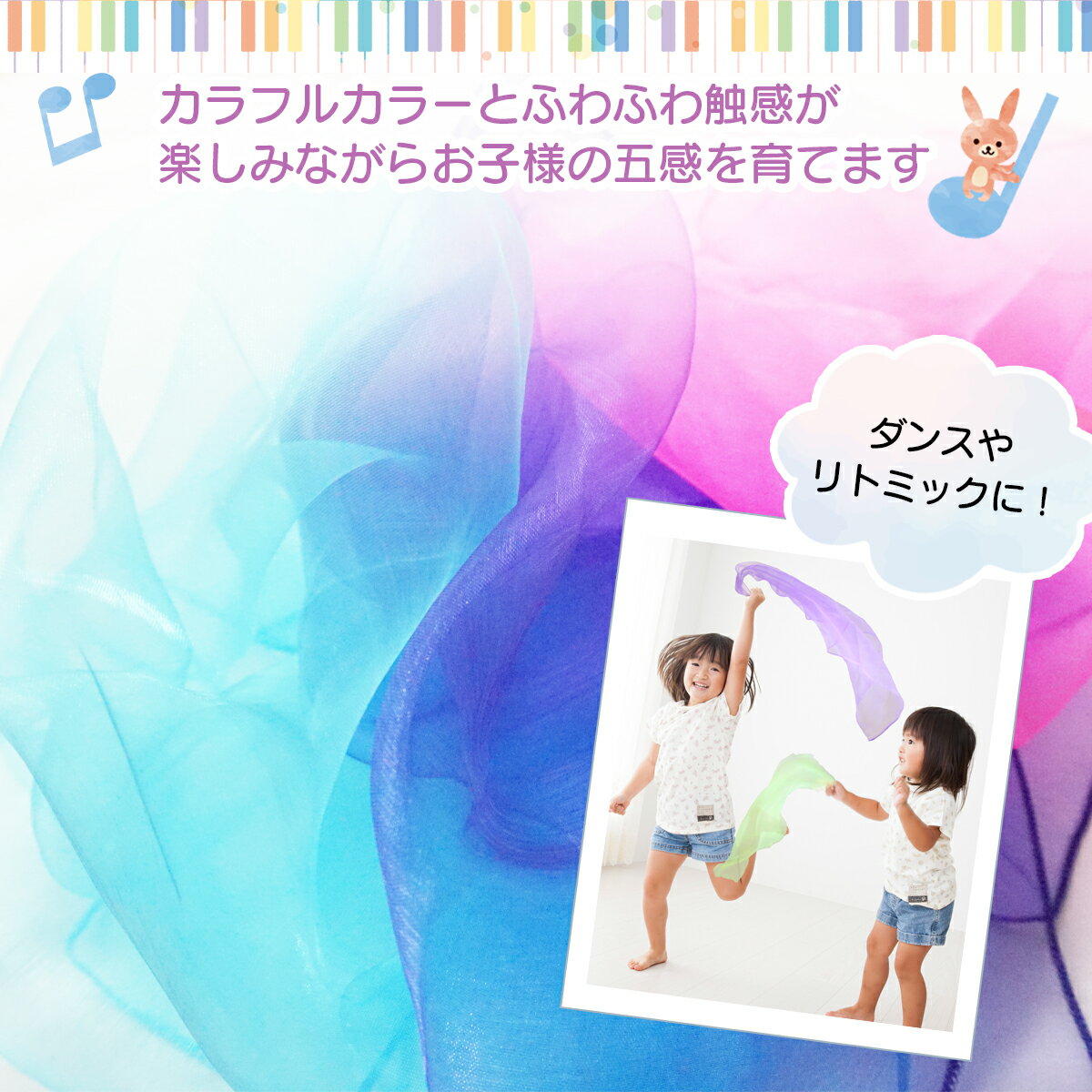 リトミックスカーフ 6色セット 60cm ほつれが少ない 色落ちしない シフォンスカーフ ダンス 幼児 子供 オーガンジー 知育 保育 モンテッソーリ 赤 ピンク 青 緑 黄色 緑 オレンジ 水色 高齢者 カラフルスカーフ リハビリ