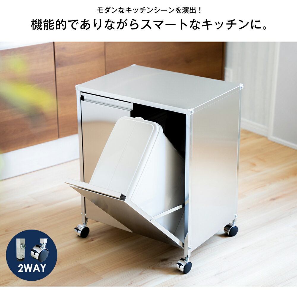 2way ステンレスダストボックス14L - シンク下2分別 一見してダストボックスには見えない、清潔感溢れる洗練された外観。 表面に細かなヘアライン処理を施し、手垢などが目立ちにくく、また分別もできて機能的。 キャスターとアジャスターが選べる2way。 商品スペック サイズ 【キャスター使用時】 約幅50×奥行38×高さ59.5cm 【アジャスター使用時】 約幅49×奥行35.5×高さ55cm 【梱包時】 約54×40×60cm 重量 約9.6kg (梱包時 約11.5kg) 耐荷重 天板:約7kg 材質 [本体] ステンレス[フレーム] スチール(クロムメッキ) 付属品 14Lペール2個 デザイナー plus A studio 備考 日本製(足立製作所) 完成品(キャスター部のみ取り付け)こちらのページは【2分別】となります。 ▼ 関連商品 ▼