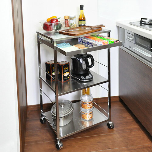 【抽選で最大100%!エントリーで2人に1人ポイント還元】キッチンワゴン キャスター付き 3段 ステンレス キッチン作業台 ステンレスラック サビにくい 清潔 丈夫 引き出し付 日本製 幅50 奥行38 高さ85.5cm 可動式ラック ランドリー 食器棚 食品ストッカー 2156-1