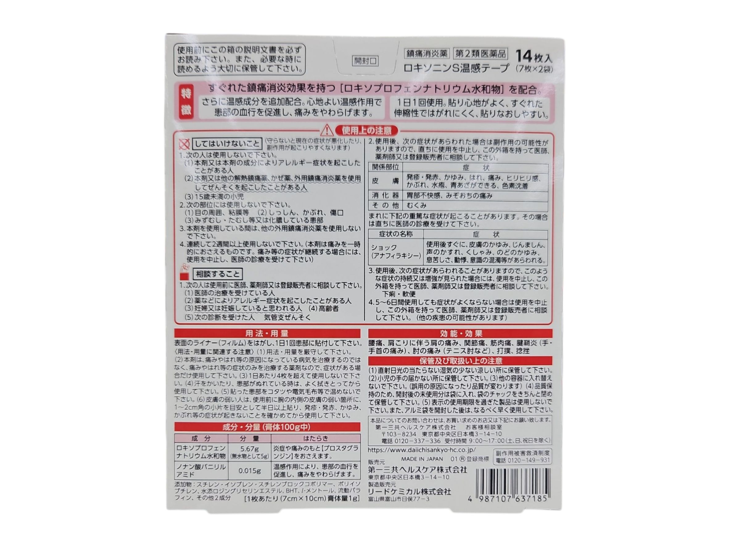 【ブラックフライデー★最大2,000円OFFクーポン配布中!!】【第2類医薬品】 ロキソニンS 温感 テープ 14枚※セルフメディケーション税制対象商品 【第一三共ヘルスケア・ロキソニンテープ】
